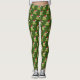 Leggings de Natal divertidas com um padrão de sapos bonitinhos em Chapéus de Papai Noel em um fundo verde.