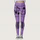 Notas de música e leggings de teclado em roxo. Notas musicais no topo; teclado na parte inferior das pernas.