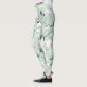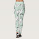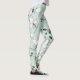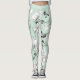 Pernas modernas, com um padrão floral elegante, com orquídeas lindas e delicadas, estilizadas, a preto e branco, sobre fundo de hortelã claro; a faixa da cintura é a hortelã.