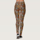 Estas leggings de outono de Floresta Cóta têm um padrão de suéter de terras nórdicas, fofo, baseado no tema dos designs de malha clássicos da Fair Isle. O padrão é de círculos castanhos e bronzeados e faixas de diamante. Cada forma tem diferentes e bonitos motivos de floresta. Há animais como coruja, raposa, guaxinim e esquilo. Você também tem duas folhas de outono, uma bolota e cogumelos. Entre os designs estão duas formas turquesas diferentes.