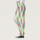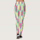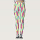 Estas leggings têm um design geométrico de fundo de retângulos verdes-marinhos e azuis-claros com ovais amarelos e cor-de-rosa no topo.