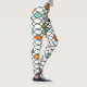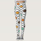 Estas leggings têm um design de ovais retrô dos anos 70 em branco, marrom, azul e dois tons de laranja.