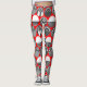 Estas leggings têm um design geométrico de ovais com diferentes padrões em cinzas em cada metade num campo vermelho.