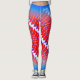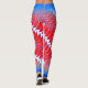 Legging Padrão Azul Branco abstrato vermelho com seu nome