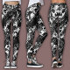 Leggings preto e branco com um padrão intrincado de redemoinho de alto contraste que combina a elegância clássica do damasco com a estética linear moderna.