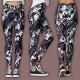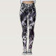 Leggings preto, branco e índigo com um padrão de redemoinho intrincado e de alto contraste que combina a elegância clássica do damasco com a estética linear moderna.