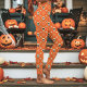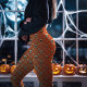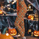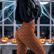 Legging Padrão de Caveiras e Flores de Halloween Laranja
