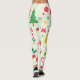 A imagem é um padrão de ilustrações com tema de Natal em um fundo creme. As ilustrações incluem árvores de Natal de vários tamanhos, ornamentos em vermelho, amarelo e verde, canas doces, flocos de neve, folhas e bagas sagradas, poinsettias e presentes acondicionados. O estilo é branco e infantil, com formas simples e cores brilhantes.