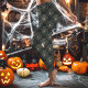 Legging Padrão de teia de aranha cinza escuro no Halloween