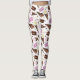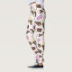 Estas leggings apresentam um padrão de cones de sorvete, pop de gelo e bares de sorvete. As cores utilizadas incluem rosa violeta e castanho. Tudo é colocado sobre um fundo branco. Bonito, e perfeito para o verão!