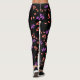 Legging Padrão floral laranja e roxo a preto