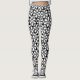 As leggings de padrão preto e branco apresentam um padrão preto e branco sem soldadura que lembra as flores e os círculos e as rodas dentro das rodas. Personalize-os adicionando seu próprio texto e/ou imagens.