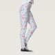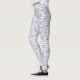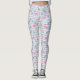 Leggings com um padrão com uma vibração de verão divertida. flamingos e abacaxis cor-de-rosa, colocados sobre um padrão listrado azul claro com folhas e corações ao redor.