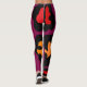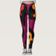Preto e roxo com padrões de cor vermelha e pêssego dentro. Arte inspirou leggings para mulheres que gostam de arte.