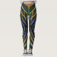 O design de explosão solar nestas Leggings foi feito a partir de uma fotografia original de serras frondes de palmetto. As frentes amarelas esverdeadas se propagam contra um fundo azul esverdeado escuro, formando um padrão parecido com tecido tapeçaria.