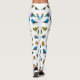 Legging pássaros Multi-coloridos nas caneleiras brancas