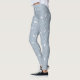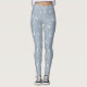 Estas leggings de estilo boho apresentam penas desenhadas à mão, flores e paisagens em branco sobre fundo azul empoeirado com acentos azuis mais claros e escuros - por katz_d_zynes
