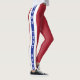 Adicione seu texto em vermelho com leggings brancas e azuis