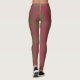 Pernas na moda castanhas com um padrão cardíaco vermelho duplo. Ioga e leggings de exercícios diferentes e quicos.