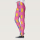 As leggings apresentam uma ilustração de cor d'água original de uma linha de picolés cor-de-rosa, azul e amarelo de "pop duplo", impressos em fundo rosa.