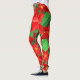 Estas leggings têm uma design de Natal de poinsetos espalhados por um campo de listras verdes.