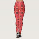 Damas Leggings têm um padrão de pontos decorativos em rosa e cinzas em fundo vermelho.