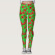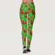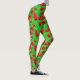 Leggings em semicumano, padrão aquoso de papoilas vermelhas num campo, contra caules e folhas verdes
