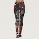 Legging Preto Ousado Vermelho Cinza Folhas Florais Botânic