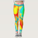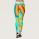 Leggings personalizadas fractais, coloridas e brilhantes, destacando um design fractal em azul, verde, vermelho, laranja e amarelo, uma banda aqua e listras brancas e coloridas.