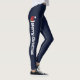 Espalhe a alegria natalícia onde quer que você vá com a ajuda dessas leggings divertidas, com uma área de texto personalizável que agora lê "Feliz Natal" junto com a ilustração de Destei de um chapéu de Papai Noel vermelho e branco em uma cor azul escura.