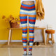 Legging Red White Blue Orange Wool Striped Pattern Knitted