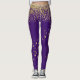 Leggings espandex elegantes feitas em roxo, com gráficos de brilho de ouro e estrelas douradas. Personalize para adicionar texto a este par de leggings de estilos que seguramente o prendem, todos os locais certos.
