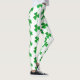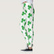 These St. Patrick’s Day leggings feature a bold all-over shamrock pattern set against a clear white background, creating a striking contrast that immediately stands out. The clovers are rendered in a green faux glitter effect, giving the appearance of sparkle while remaining smooth and comfortable to wear.