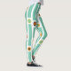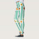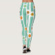 Estas leggings têm um design de 1970 com faixas azuis interrompidas por círculos em castanho, laranja e verde.
