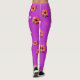 HAMbyWhiteGlove aka HAMbWG Havaí leggings temáticas com fundo violeta, flores de hibisco por toda parte e as palavras havaianas para amor, espírito e família (Aloha, Uhane e Ohana)