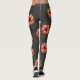 HAMbyWhiteGlove aka HAMbWG Havaí leggings temáticas com cinza de carvão, flores de hibisco por toda parte e as palavras havaianas para amor, espírito e família (Aloha, Uhane e Ohana)