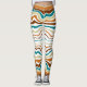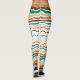 Leggings de listras brancas e azuis, brancas e castanhas, elegantes e coloridas.