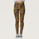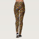 As leggings apresentam um marcador original ilustrativo de um punhado de trilhas misturadas com loucos, passinas e peças doces coloridas, impressas sobre fundo castanho.