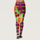 As senhoras coloridas tinham leggings com laranja, roxo, amarelo e verdes limões, com listras.