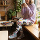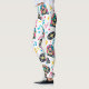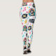 The Vinyl Groove leggings feature a repeating all-over print of vinyl records, neon jukeboxes, musical notes, and lightning bolt accents — all scaled carefully to maintain proportion when worn. This ensures the design flows naturally along the legs without stretching or distortion.