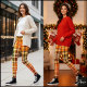 Legging Warm Autumnal Gradient Yellow Green Plaid