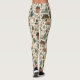 Cottage core leggings with a cute village of cottages and trees, mushrooms, flowers in green, brown, and earthy tones.