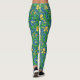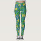 Leggings em um William Morris, Art Nouveau, impressão têxtil de riscas e folhas, melhoradas digitalmente e coloridas, em ouro amarelo, verde e azul macio, sobre fundo azul de cobalto profundo