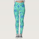 Leggings em um William Morris, Art Nouveau, impressão têxtil de irises e folhas, melhoradas digitalmente e coloridas, em cobalto profundo e azul-céu, sobre fundo aqua macio com aqua profundo e folhas de foca