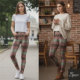 Legging Xadrez Coral e Salvia