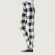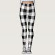 Uma design de xadrez de búfalo em preto contra um fundo branco sobre leggings.