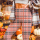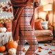 Legging Xadrez de Outono Rosa, Laranja e Preto