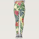 A cheerful red and pink floral pattern with large green and blue monstera leaves against a soft yellow background.