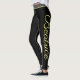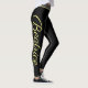 Yoga de script amarelo personalizado e leggings de malhação. Calças de treino de tendências com nome personalizado. Vestuário desportivo para mulheres e raparigas. Miras pretas personalizáveis em qualquer combinação de cores. Faça o seu para a academia, dança, treinamento, meditação e muito mais. Adicione seu próprio texto às pernas de ambos os lados. Modelo de tipografia elegante. Um aniversário único ou uma ideia de presente de Natal para ela.
