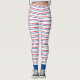 Par bonito de pernas; listras vermelhas, brancas e azuis com punho azul no tornozelo. Divertido de vestir para 4 de julho, mas também com um topo de estilo náutico para um dia de navegação!